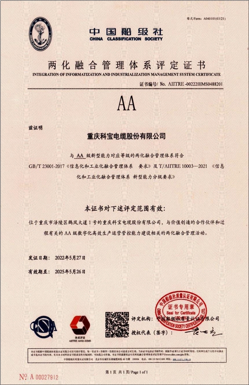 兩化融合管理體系評定證書
