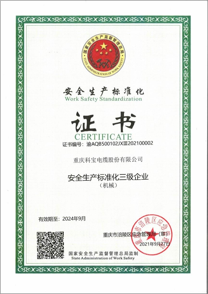 安全生產標準化證書