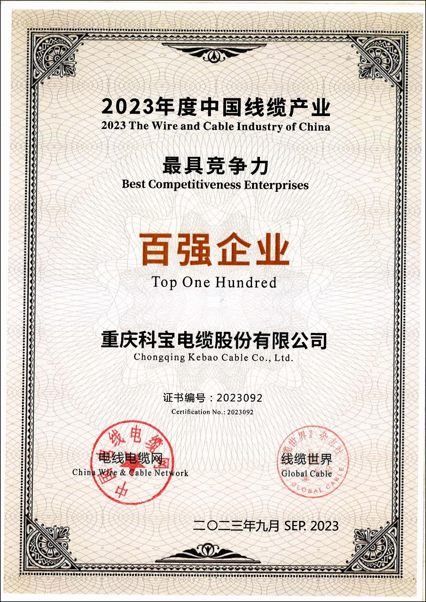 2023年度中國線纜產業百強企業