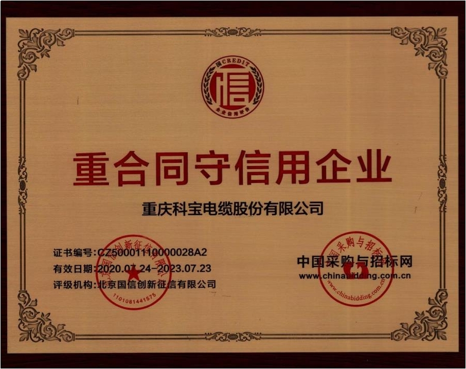 重合同守信用企業證書