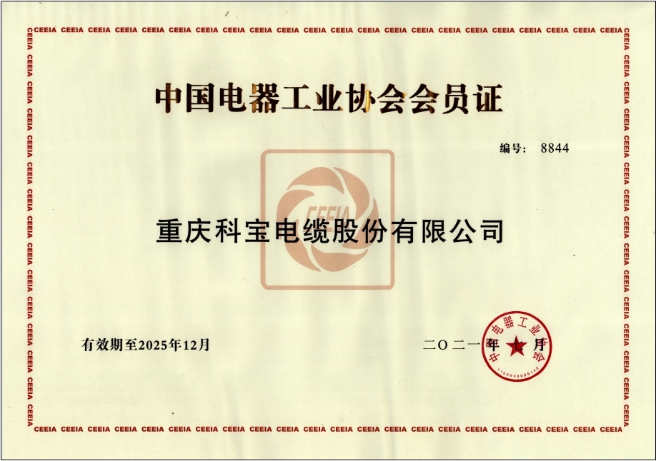 中國電器工業協會會員證書