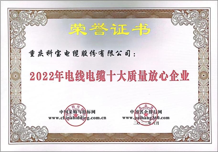 2022年電線電纜十大質(zhì)量放心企業(yè)
