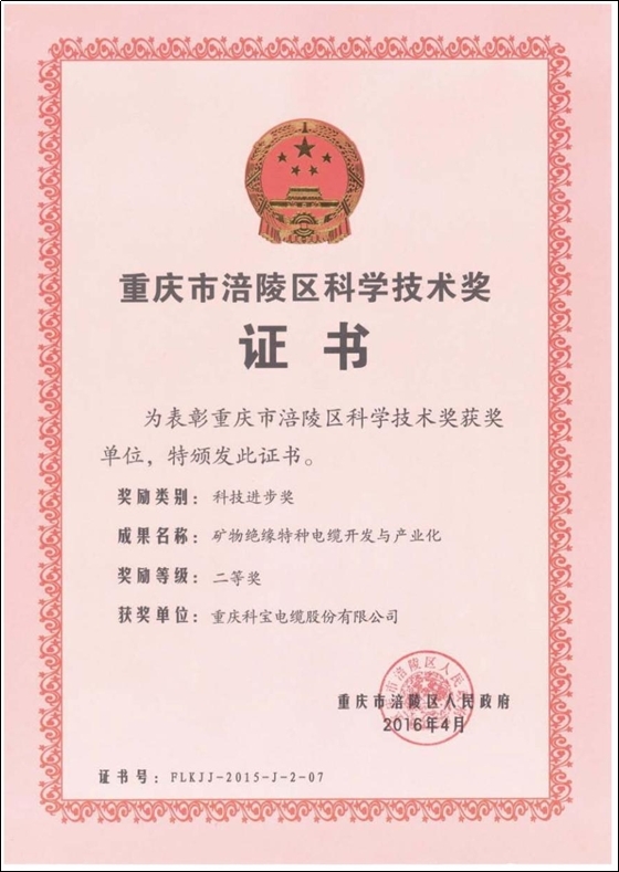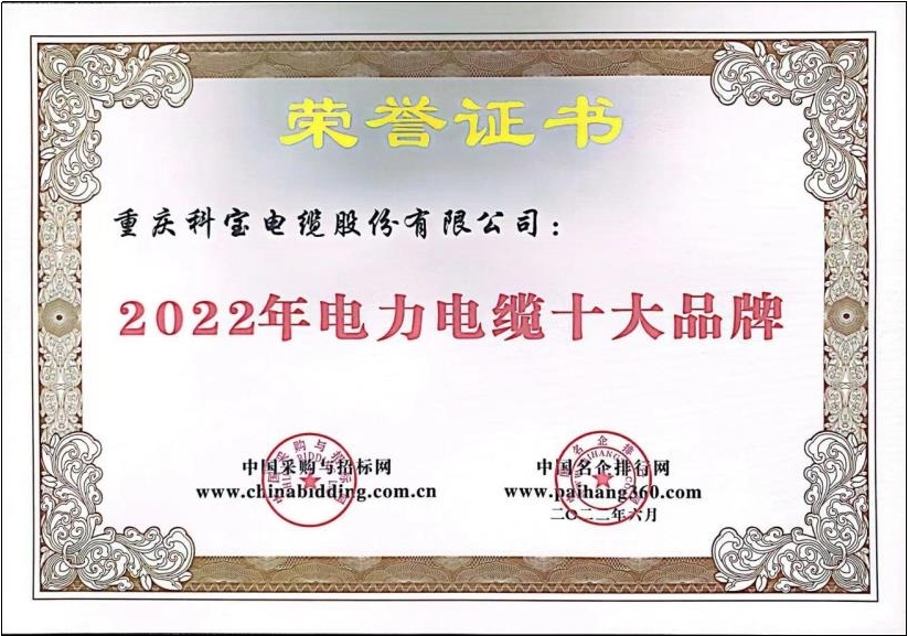 2022年電力電纜十大品牌證書