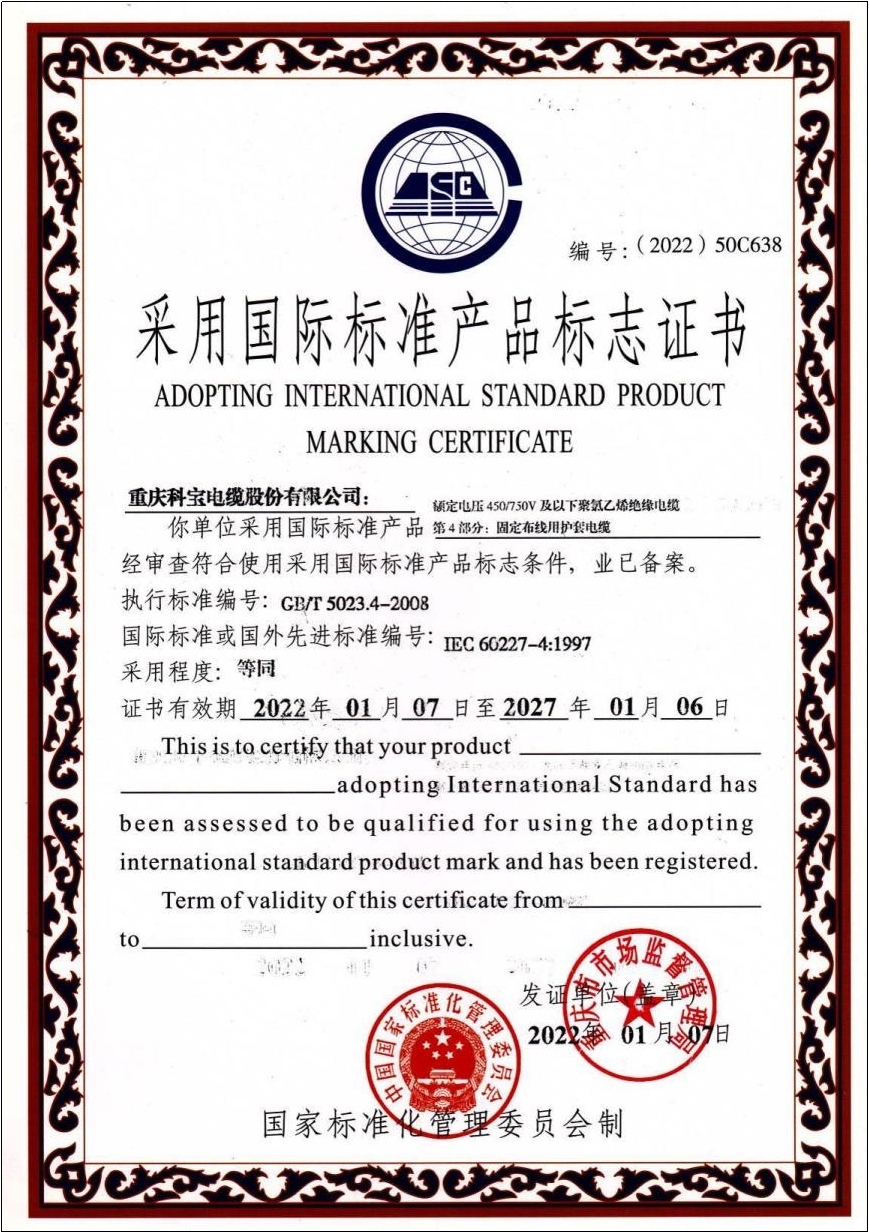 采用國際標準產(chǎn)品標志證書