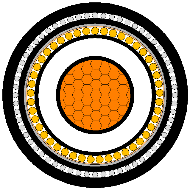 | YJSY73 | YJLSY73 | 銅芯或鋁芯交聯聚乙烯絕緣聚乙烯護套電力電纜 Power cable with Cu/Al conductor,XLPE insulation and PE sheath |